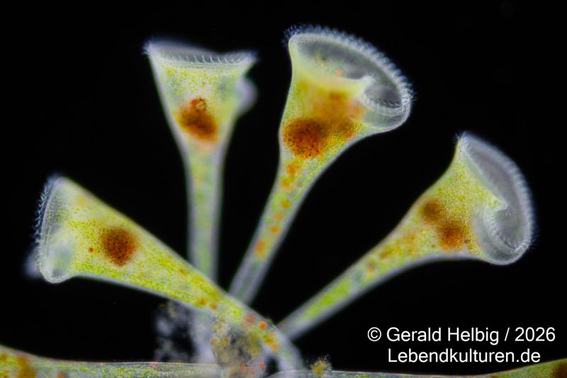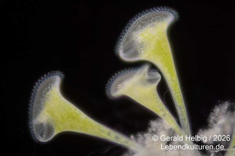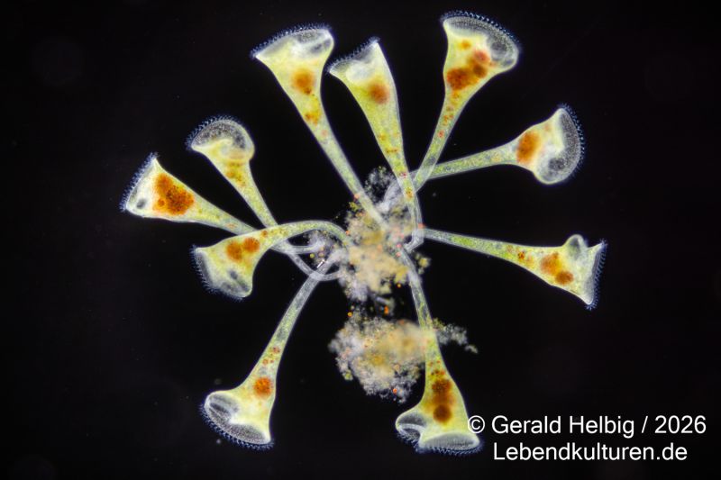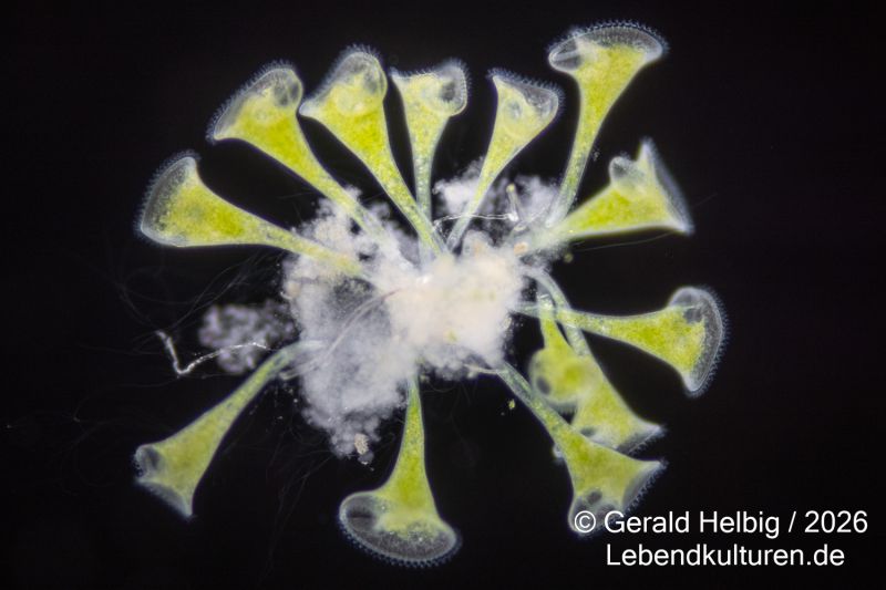 Nach etwa vier Wochen empfiehlt sich das Anlegen eines neuen Kulturansatzes, um eine stabile Population aufrechtzuerhalten. Der alte Ansatz kann in die natürliche Umgebung überführt werden, da Stentor polymorphus eine einheimische Art ist.