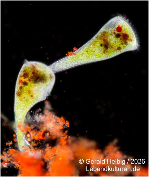 Das grüne Trompetentierchen (Stentor polymorphus) ist ein einzelliger eukaryotischer Organismus aus der Familie der Stentoridae und zeichnet sich durch das Vorhandensein endosymbiotischer Algen aus, die für seine charakteristische grüne Färbung verantwortlich sind. Aufgrund dieser Symbiose stellt Stentor polymorphus ein interessantes Modellorganismus für die Untersuchung von Wechselwirkungen zwischen Wirtszelle und Endosymbionten dar.