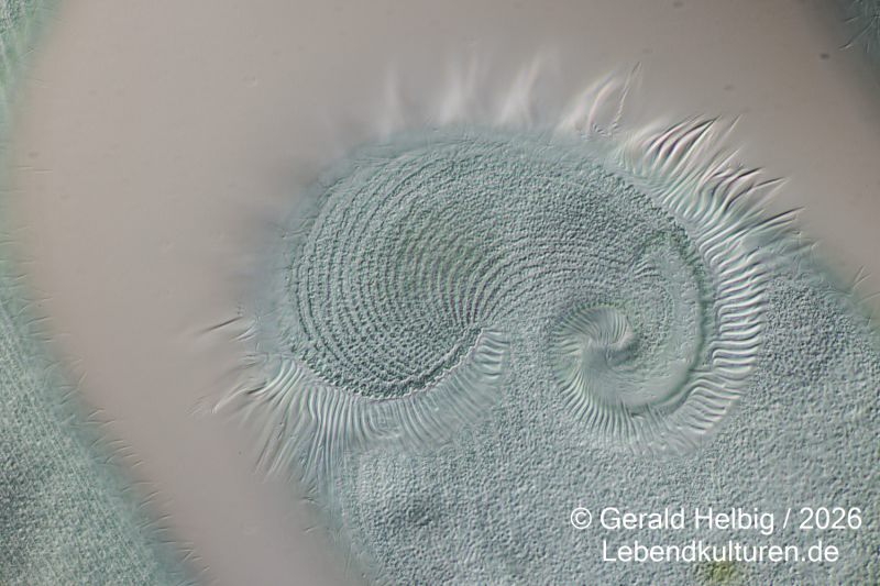 - ein bewimperter Peristombereich (Mundfeld) zur Nahrungsaufnahme