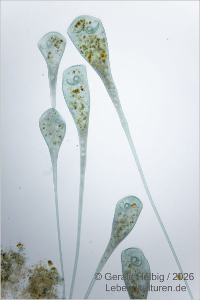 Bei günstigen Bedingungen sind die Individuen häufig mit ihrem Hinterende am Substrat befestigt. Bei Störung oder ungünstigen Umweltbedingungen lösen sie sich vom Untergrund und gehen in eine frei schwimmende, verkürzte Form über.