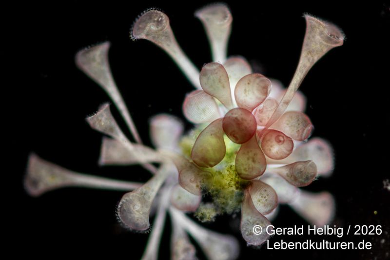 Bei günstigen Bedingungen sind die Individuen häufig mit ihrem Hinterende am Substrat befestigt. Bei Störung oder ungünstigen Umweltbedingungen lösen sie sich vom Untergrund und gehen in eine frei schwimmende, verkürzte Form über.